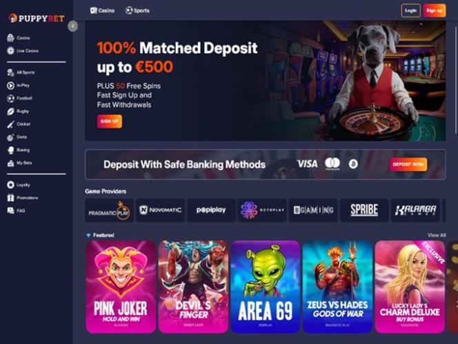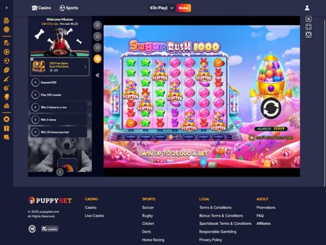PuppyBet — это современный игорный сайт, ориентированный как на игроков казино, так и на любителей ставок на спорт. Бренд предлагает широкий выбор игр, включая онлайн-слоты, игры с живыми дилерами, настольные игры и игры с краш-тестами, а также множество вариантов ставок на спорт. Игроки смогут воспользоваться многочисленными акциями и бонусами, а также использовать криптовалюту для пополнения и вывода средств с помощью современных методов, таких как Bitcoin.