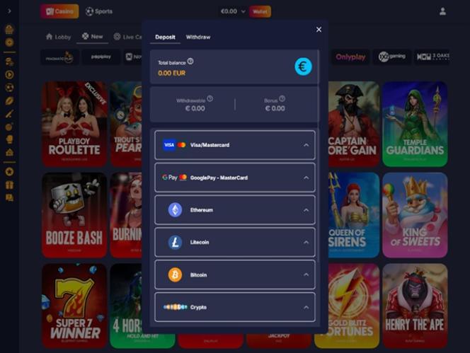 Казино принимает фиатные валюты и криптовалюты.