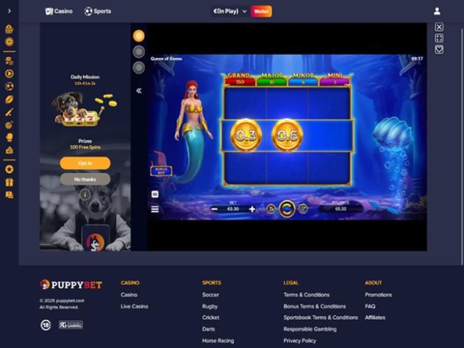 Как и следовало ожидать от названия бренда, тематика этого казино посвящена щенкам и собакам, что придает сайту массу индивидуальности и стиля, особенно учитывая обилие оригинальных иллюстраций и видеоэффектов. Пользовательский интерфейс прост в навигации, и у игроков не возникнет проблем с доступом ко всем страницам и разделам.