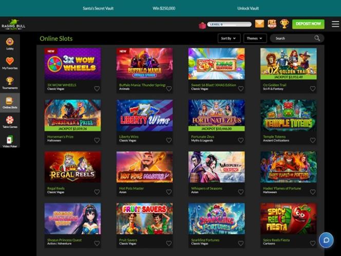 Библиотека игр казино Raging Bull включает в себя большой выбор слотов, многие из которых являются видеослотами. В Raging Bull также можно выиграть несколько крупных прогрессивных джекпотов, в том числе призы от RTG: Midlife Crisis, Shopping Spree и Jackpot Pinatas.
