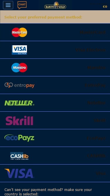 Ramses Gold не принимает игроков из следующих стран: Алабама, Аляска, Аризона, Арканзас, Калифорния, Колорадо, Коннектикут, округ Колумбия, Делавэр, Флорида, Джорджия, Гавайи, Айдахо, Иллинойс, Индиана, Айова, Израиль, Канзас, Кентукки, Луизиана, Мэн, Мэриленд, Массачусетс, Мичиган, Миннесота, Миссисипи, Миссури, Монтана, Небраска, Невада, Нью-Гэмпшир, Нью-Джерси, Нью-Мексико, Нью-Йорк, Северная Каролина, Северная Дакота, Огайо, Оклахома, Онтарио, Орегон, Пенсильвания, Род-Айленд, Сингапур, Южная Каролина, Южная Дакота, Теннесси, Техас, Турция, Соединенные Штаты, Юта, Вермонт, Вирджиния, Вашингтон, Западная Вирджиния, Висконсин и Вайоминг.