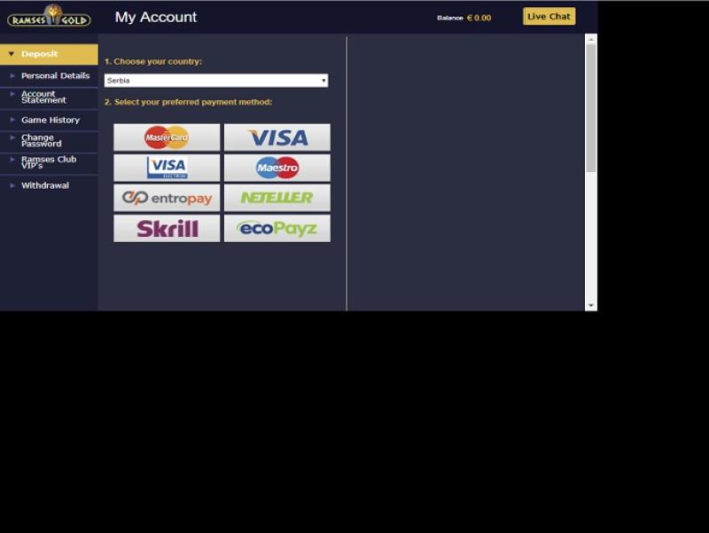 Условия и положения казино Ramses Gold вполне приемлемы, но, учитывая применяемые в нем методы, доверять руководству казино не стоит. Банковская система Ramses Gold достаточно хороша: пополнение и вывод средств доступны через Maestro, Visa, ClickandBuy, Skrill, банковский перевод и EntroPay. Пополнение счета также возможно через Giropay, Poli, Western Union, Paysafecard, Diners и SOFORT. Время обработки выплат варьируется от 24 часов для электронных кошельков до 5 дней для банковского перевода, а ежемесячный лимит на вывод средств составляет 5000 евро.