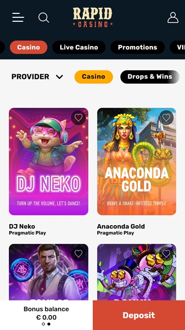 К счастью, Rapid Casino пока хорошо справляется с выбором партнеров, сотрудничая с такими компаниями, как Quickspin , Microgaming, Betsoft, Yggdrasil, iSoftbet, Relax, NetEnt и многими другими.