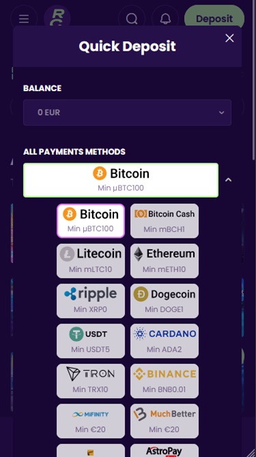 В самом низу главной страницы вы можете увидеть, какие способы оплаты доступны для пополнения счета и вывода средств в Ready Casino, а также стандартные страницы, такие как ответственная игра, условия использования, служба поддержки клиентов, правила игры и политика конфиденциальности.