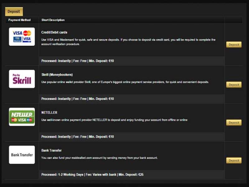 Real Deal Bet работает на платформе Microgaming, Net Entertainment, Playtech, BetSoft, Big Time Gaming, Evolution Gaming, Genesis Gaming, iSoftBet, Play'n GO, playson, Quickspin, Rabcat, Gameplay Interactive, Games Global, 2by2 Gaming, Ainsworth, bluberi, GamesOS and Leander Games , а игры в казино доступны через веб-платформу, позволяющую игрокам играть непосредственно в браузере.
