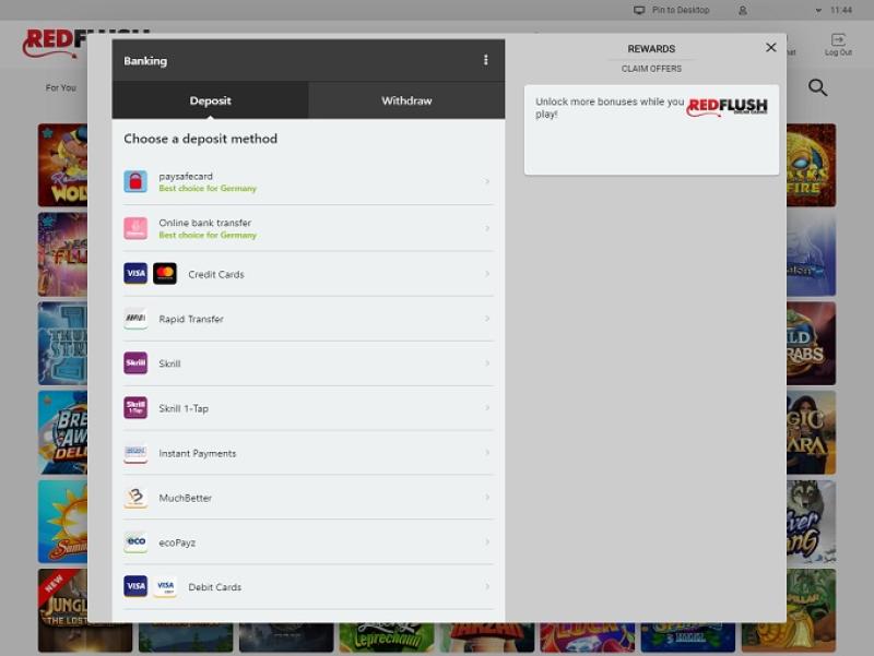 Казино Red Flush работает на программном обеспечении Microgaming, Net Entertainment, Evolution Gaming, Triple Edge Studios, Stormcraft Studios, Switch Studios, Pulse 8 Studios, Games Global, Just For The Win and Fortune Factory Studios , которое предлагает сотни игр, а также отличную игровую платформу, на которой размещены все сервисы казино. Казино доступно как через загружаемый программный клиент, так и через веб-платформу, и по своим функциям они практически идентичны. Также доступно мобильное казино для тех, кто хочет играть на своем смартфоне или планшете.