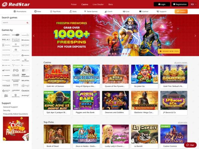 Помимо стандартных игр казино, RedStar Casino предлагает своим игрокам игры с живыми дилерами, покер и фэнтези-спорт.