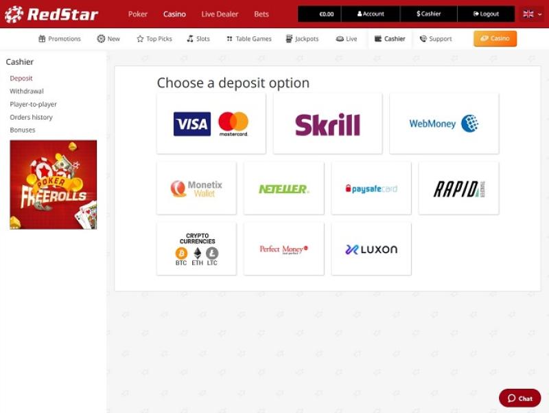 Банковская система в RedStar Casino неплохая, хотя и не такая быстрая, как хотелось бы. Казино предлагает пополнение и вывод средств через Skrill, Neteller, Visa, WebMoney, Moneta.ru, а также пополнение через Bitcoin, OKPay, SOFORT, MasterCard и Paysafecard. Время обработки выплат может составлять до 7 рабочих дней в зависимости от выбранного способа. Также существует лимит на вывод средств в размере 9000 долларов в неделю.