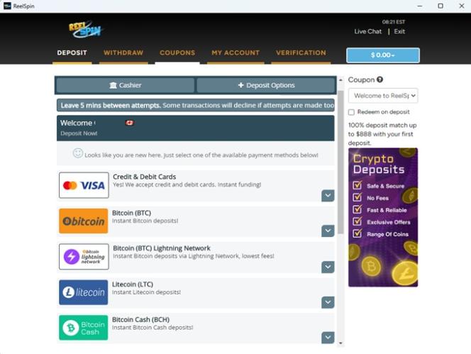Казино Reel Spin — это онлайн-платформа для ставок, основанная в 2013 году компанией Carmel Media Group. Казино обслуживает юрисдикции по всему миру, включая США, и предлагает набор игр, аналогичный большинству сайтов, ориентированных на игроков из США. Казино отличается хорошим управлением, очень быстрыми выплатами и выгодными условиями бонусов, что делает Reel Spin Casino определенно достойным внимания.