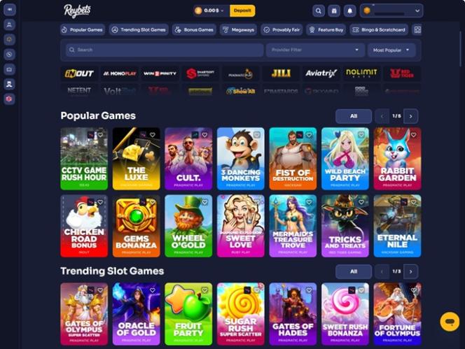 Как мы уже упоминали, в игровом репертуаре казино представлены тысячи различных игр. Однако одной из самых популярных игр, безусловно, являются слоты , поскольку они составляют подавляющее большинство игровой библиотеки Reybets. Независимо от того, предпочитаете ли вы классику и классику или новые релизы, вы не будете разочарованы. Вот лишь некоторые из игр, которые вы сможете попробовать в казино: