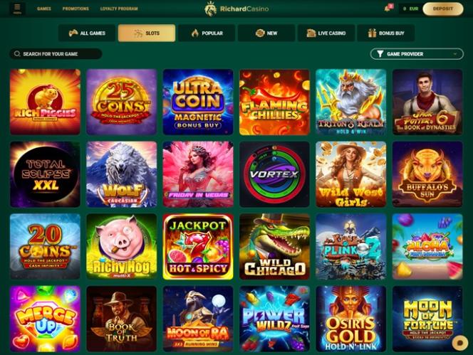 Далее мы хотим рассмотреть, какие игровые возможности вы можете найти в Richard Casino. Как мы все знаем, самым важным элементом любой онлайн-платформы для азартных игр является библиотека предлагаемых игрокам продуктов. Хотя дизайн, бонусы и другие функции важны, все мы здесь для того, чтобы играть в увлекательные игры .