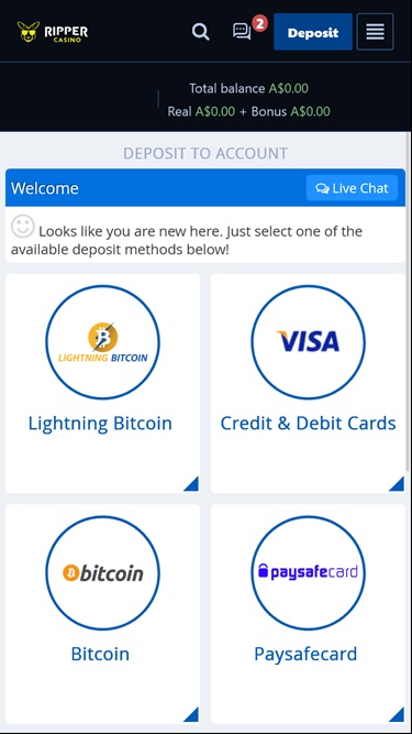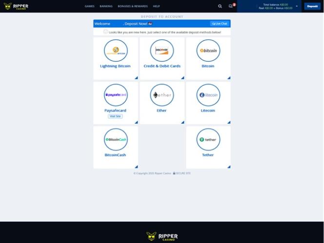 Что касается кассы и банковских операций на Ripper, то здесь доступны различные способы пополнения и вывода средств . Этот игровой сайт, ориентированный на игроков из США, поддерживает криптовалюту, а также другие варианты, такие как платежные карты и множество популярных среди игроков электронных кошельков.