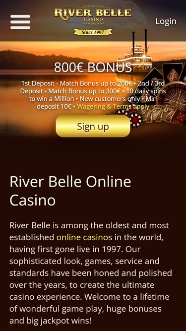 Казино River Belle — это онлайн-букмекерская контора, открывшаяся в 1997 году. Казино принадлежит и управляется компанией Digimedia Ltd, Мальта, которая также выпускает множество других казино, практически идентичных друг другу. Казино пользуется хорошей репутацией как среди профессионалов индустрии, так и среди игроков, которые ценят обширную игровую библиотеку сайта, опытный менеджмент и удобную систему пополнения счета.