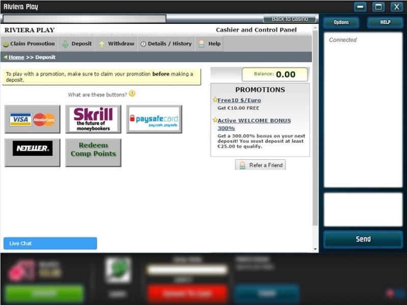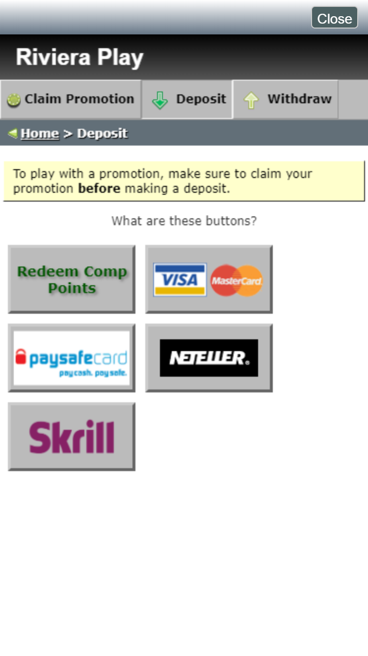 Варианты банковских операций в Riviera Play Casino