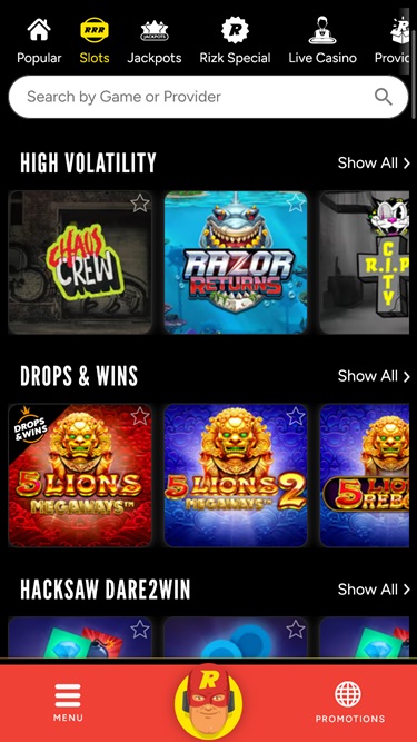 Казино Rizk работает на программном обеспечении Microgaming, Net Entertainment, Playtech, 1x2gaming, Barcrest, Big Time Gaming, ELK Studios, Evolution Gaming, iSoftBet, lightningboxgames, Novomatic, Oryx, Play'n GO, Quickspin, Rabcat, Relax Gaming, Thunderkick, Yggdrasil, Endorphina, Wazdan, Booming Games, Stakelogic, Pragmatic Play, Nolimit City, Red Tiger Gaming, Spinomenal, Skillzzgaming, Fantasma Games, Kalamba, Triple Edge Studios, Northern Lights Gaming, Stormcraft Studios, Electric Elephant Games, Bulletproof Games, All41 Studios, Gluck Games, Gameburger Studios, Neon Valley Studios, Golden Rock Studios, Swintt, Shuffle Master, SpinPlay Games, Blue Guru Games, Games Global, 2by2 Gaming, Bally Technologies, bluberi, Blueprint Gaming, Greentube, Merkur Gaming, NextGen, NYX Interactive, Push Gaming, WMS, Inspired Gaming, Gaming Realms, Cayetano, SG Interactive, Gamomat, Red7Mobile, Scientific Games, Side City Studios, Reel Time Gaming, Iron Dog Studio, Old Skool Studios, Foxium, Just For The Win, PearFiction Studios, Wild Streak Gaming, Slingshot Studios, Fortune Factory Studios, STHLM Gaming, 4ThePlayer, Gamevy, Crazy Tooth Studio, ReelPlay, Alchemy Gaming, Black Pudding Games, Snowborn Games, Hacksaw Gaming, Max Win Gaming, Gold Coin Studios, Bang Bang Games, Half Pixel Studios, Slotmill, SilverBack Gaming, Peter And Sons, Eurostar Studios, Aurum Signature Studios, Lucksome Gaming, Area Vegas, Leap Gaming, Wishbone Games, Circular Arrow, Print Studios, HammerTime Games, Four Leaf Gaming, INO Games, Nailed It! Games and Atomic Slot Lab , а его библиотека игр доступна как через веб-платформу, так и через мобильный сайт, позволяющий играть на смартфонах и планшетах.Blackjack