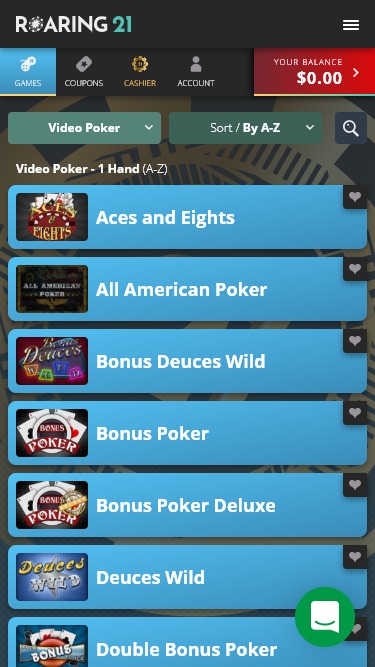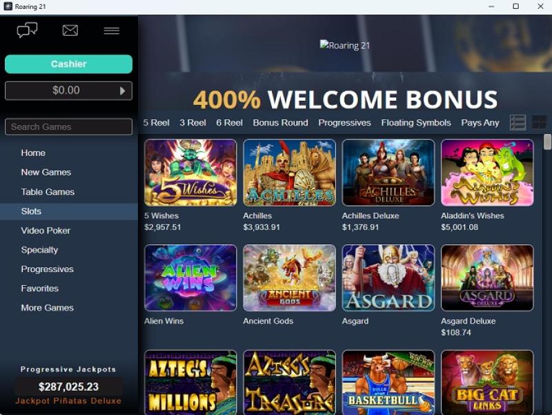 В Roaring 21 представлена обширная библиотека игровых автоматов, включающая классические и видеослоты от RTG. Эти игры отличаются разнообразными темами и бонусами, а во многих из них можно выиграть небольшие прогрессивные джекпоты. Игроки, желающие играть на ходу, найдут здесь десятки мобильных слотов от RTG.