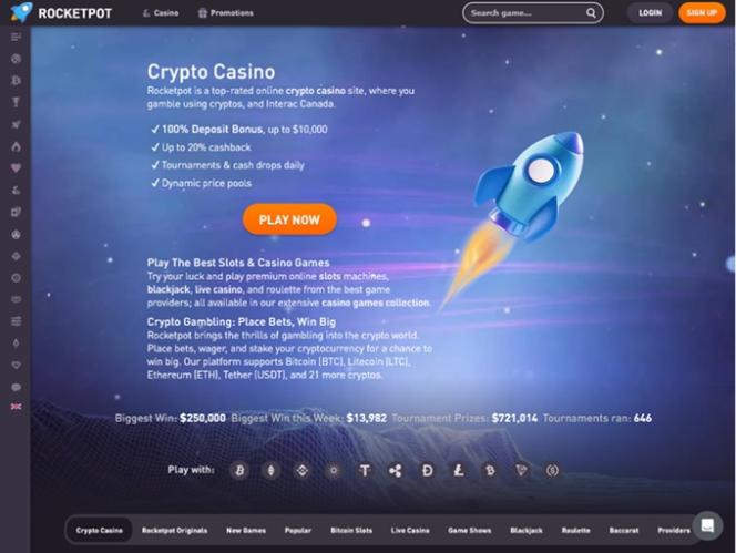 Rocketpot Casino — это хорошо зарекомендовавшее себя онлайн-казино, ориентированное на криптовалюты, цель которого — обеспечить наилучшие впечатления для всех своих участников! Здесь представлено более 3000 отличных игр от ведущих мировых разработчиков программного обеспечения, а различные бонусы и акции сделают все возможное, чтобы улучшить ваш игровой опыт!
