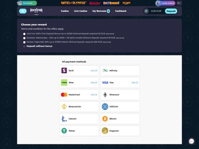 Если вы цените солидный набор акций и бонусов в онлайн-казино, то вам понравится проводить время в RockstarWin Casino. Для начала, если вы захотите создать учетную запись, вы можете рассчитывать на получение щедрого приветственного бонуса, который поможет вам начать игру.