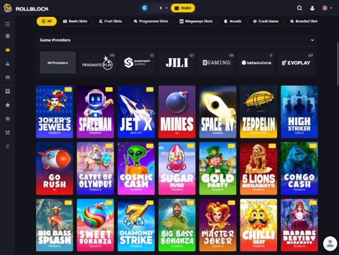 Казино Rollblock предлагает очень компетентный выбор студий-разработчиков. Доступно 80 поставщиков программного обеспечения , что позволяет каждому игроку найти что-то идеально подходящее своим предпочтениям.