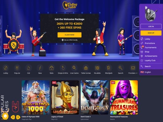Вдохновленное рок-культурой и продуктами казино, это онлайн-казино решило идеально объединить эти две страсти, и так в 2021 году было создано казино с необычным названием — RollingSlots Casino.