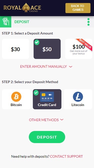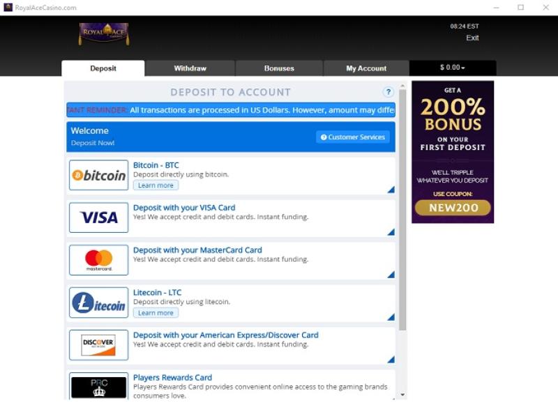Варианты банковских операций в Royal Ace
