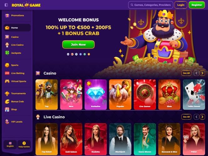 В казино Royal Game вы можете просматривать контент на разных языках, включая английский, финский, немецкий, венгерский, норвежский, польский, испанский, итальянский и чешский . Такая доступность позволяет игрокам, для которых английский не является родным языком, легко пользоваться всем доступным контентом, что мы очень ценим.