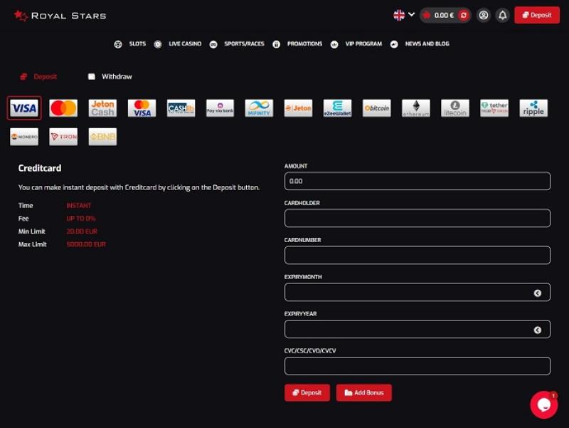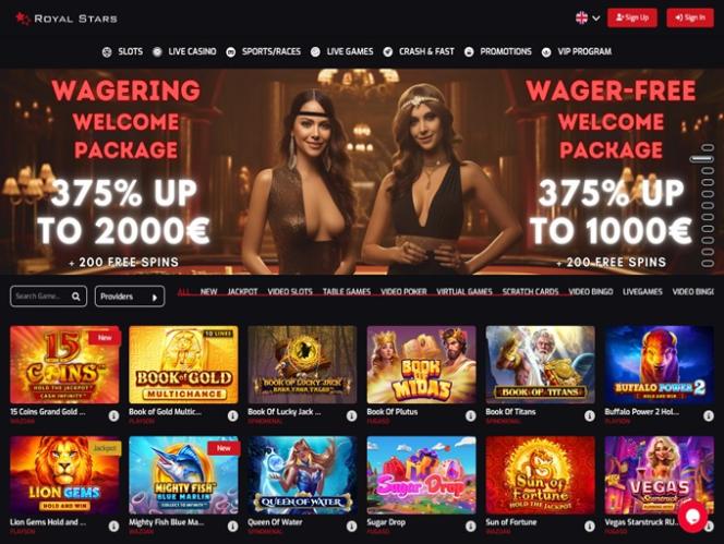 Казино предлагает огромный выбор игр, разделенных на две основные категории: слоты и игры с живыми дилерами , а также множество привлекательных подразделов, которые не дадут игрокам заскучать и развлечься. Удобные сроки и лимиты вывода средств, а также заманчивые промоакции создают отличное первое впечатление, поэтому давайте рассмотрим Royal Stars подробнее!