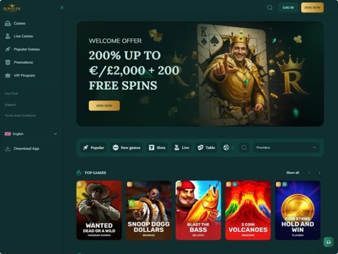 Royalen — это онлайн-казино, ориентированное на предоставление всестороннего игрового опыта игрокам из Великобритании, Германии и Нидерландов, предлагая широкий выбор игр, включая настольные игры, мгновенные игры, игры с живыми дилерами и слоты на реальные деньги. Бренд также известен своими масштабными акциями, бонусами и турнирами, которые не дадут игрокам заскучать надолго.