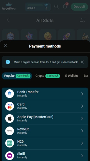 Если вам нравится играть в казино на портативных устройствах, вас ждет массу удовольствия, поскольку это казино превосходно оптимизировано для мобильных игр. Если же вы предпочитаете использовать ПК, вы также сможете насладиться контентом RoyalSea, но помните, что в обоих случаях надежное интернет-соединение обеспечит бесперебойную игру и быструю загрузку игр.