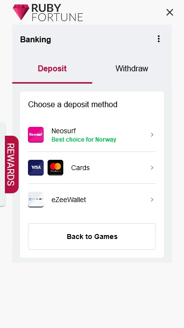 Казино Ruby Fortune работает на программном обеспечении Microgaming, Net Entertainment, Evolution Gaming, Ezugi, Rabcat, Pragmatic Play, Red Tiger Gaming, Triple Edge Studios, Northern Lights Gaming, Stormcraft Studios, Switch Studios, Electric Elephant Games, All41 Studios, Gameburger Studios, Pulse 8 Studios, Neon Valley Studios, SpinPlay Games, Real Dealer Studios, GONG Gaming, On Air Entertainment, Buck Stakes Entertainment, Games Global, Old Skool Studios, Foxium, Just For The Win, PearFiction Studios, Wild Streak Gaming, Slingshot Studios, Fortune Factory Studios, Crazy Tooth Studio, Alchemy Gaming, Snowborn Games, Gold Coin Studios, Half Pixel Studios and Aurum Signature Studios , что обеспечивает ему обширную библиотеку игр, и доступно как в виде загружаемого программного обеспечения, так и в виде веб-платформы, позволяющей играть непосредственно в веб-браузере.