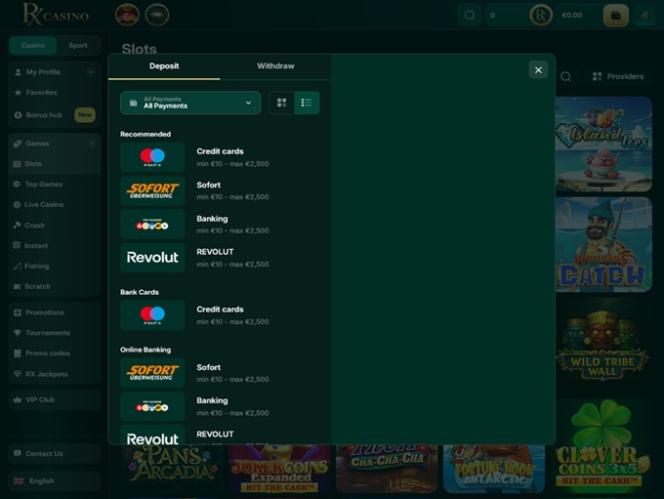 Варианты банковских операций в RX Casino