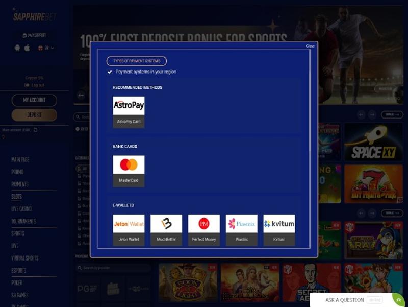 Казино Sapphirebet — это огромная онлайн-платформа для азартных игр, созданная для привлечения игроков из Бразилии, Норвегии, Польши и Украины, предлагающая обширную библиотеку азартных игр и вариантов ставок на спорт. Онлайн-казино огромно и позволяет игрокам исследовать тысячи игр, включая слоты на реальные деньги, игры с живыми дилерами, игры в краш, бинго и настольные игры, а также предлагает надежную программу акций с множеством бонусов.