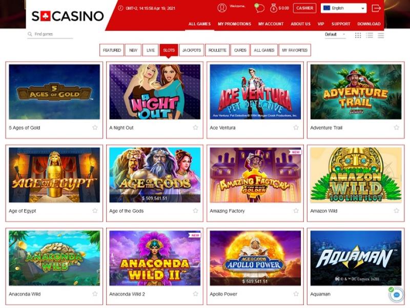 В игре представлено более 60 слотов с количеством барабанов до 5 и количеством линий выплат до 40.
