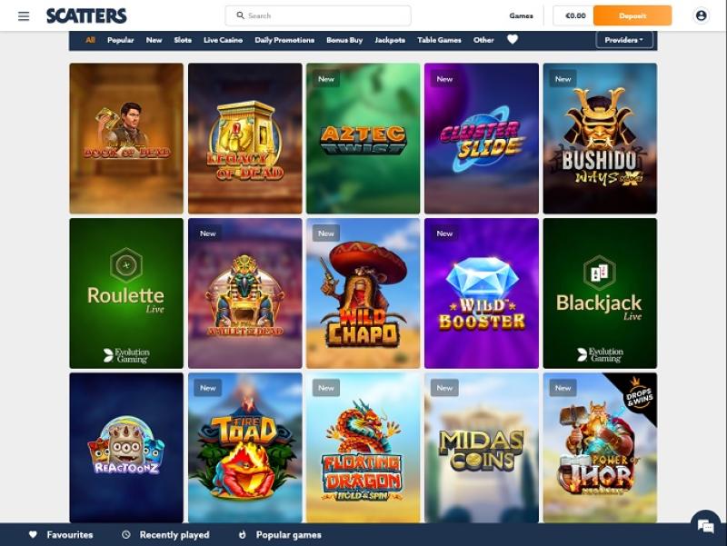 Scatters работает на платформе Microgaming, Net Entertainment, BetSoft, 1x2gaming, Big Time Gaming, Evolution Gaming, Ezugi, Genesis Gaming, Habanero Systems, Novomatic, Play'n GO, playson, Quickspin, Relax Gaming, Thunderkick, Vivo Gaming, Endorphina, Betgames, PlayPearls, Pragmatic Play, Nolimit City, Felt Gaming, Red Tiger Gaming, Spinomenal, Felix Gaming, Fugaso, Fantasma Games, Kalamba, Revolver Gaming, Platipus Gaming, Skywind, Spinmatic, Spadegaming, Northern Lights Gaming, Fazi, Evoplay, Stormcraft Studios, Switch Studios, OneTouch, Pocket Games Soft, Triple PG, All41 Studios, Mascot Gaming, Gameburger Studios, Pulse 8 Studios, Slot Factory, Neon Valley Studios, Golden Rock Studios, Swintt, Woohoo Games, SpinPlay Games, Qora Games, SmartSoft Gaming, GONG Gaming, On Air Entertainment, Buck Stakes Entertainment, Caleta Gaming, Games Global, Reevo, 2by2 Gaming, Blueprint Gaming, Merkur Gaming, Tom Horn Gaming, Mr Slotty, Reel Time Gaming, BF Games, betiXon, Iron Dog Studio, Old Skool Studios, Slingshot Studios, AvatarUX, Crazy Tooth Studio, ReelPlay, Alchemy Gaming, BB Games, Snowborn Games, Hacksaw Gaming, Max Win Gaming, Gold Coin Studios, Gamzix, Half Pixel Studios, Peter And Sons, Eurostar Studios, Aurum Signature Studios, Lucksome Gaming, Area Vegas, Bombay Live, Leap Gaming, Kiron, 3 Oaks Gaming, Wishbone Games, Spribe, Circular Arrow, Print Studios, HammerTime Games, INO Games, Nailed It! Games, Neko Games, Reel Kingdom, Oros Gaming and PlayAce , а игры казино предоставляются через веб-платформу, которая загружается непосредственно в вашем интернет-браузере. Сайт выглядит привлекательно и прост в навигации, а также имеет встроенную поддержку мобильных устройств, позволяющую играть со смартфона или планшета.