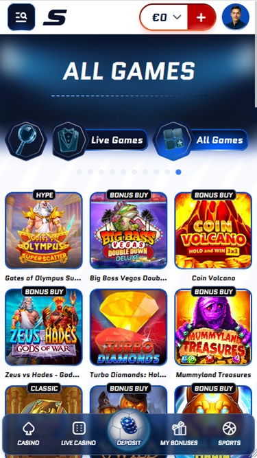 Помимо эффектного веб-сайта с отличным дизайном, этот игорный сайт также не стесняется демонстрировать все свои игры и развлечения. Игрокам будет доступна библиотека, насчитывающая несколько тысяч игр, от онлайн-слотов, игр с живыми дилерами и настольных игр до мгновенных краш-игр.