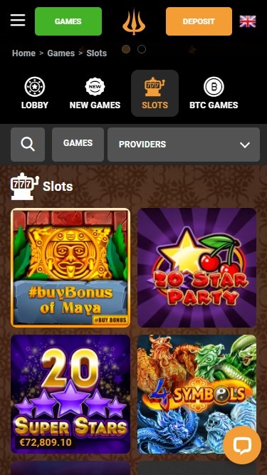 Игры разделены на хорошо организованные разделы: Слоты, Игры на биткоины, Джекпоты, Видеопокер, Лотерея, Казино с живыми дилерами…