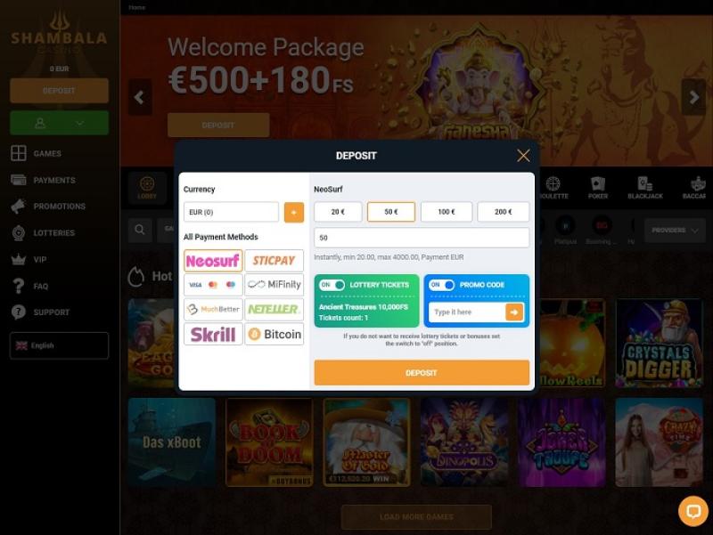 Легко распознать казино, которое заботится о своих игроках, просто взглянув на выбор игр в его библиотеке. Список поставщиков программного обеспечения для казино многое говорит о том, сколько усилий оператор вкладывает в удовлетворение потребностей игроков в азартных играх. Shambala, использующее программное обеспечение SoftSwiss , также сотрудничает с такими компаниями, как NetEnt, Playtech, Spinomenal, Evolution и многими другими.