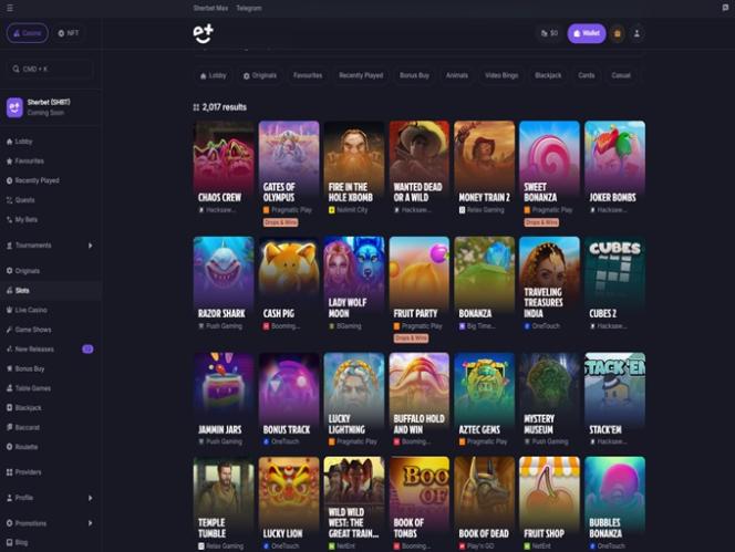 Игроки Sherbet Casino смогут насладиться великолепными слотами, такими как Book of the Fallen, The Dog House Megaways, Sweet Bonanza, Sugar Rush, Starlight Princess и многими другими. Поскольку здесь представлен широкий выбор отличных разработчиков программного обеспечения, вполне логично, что ассортимент игровых автоматов будет впечатляющим.