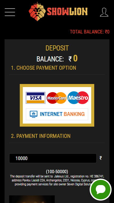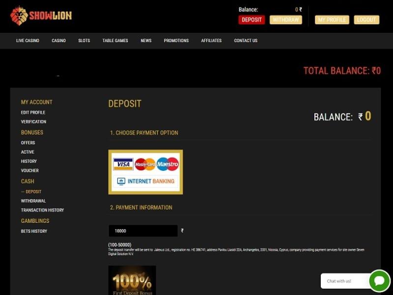 Судя по всему, в казино Showlion отсутствует какая-либо программа поощрения.