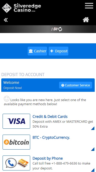 Варианты банковских операций в Silveredge Casino