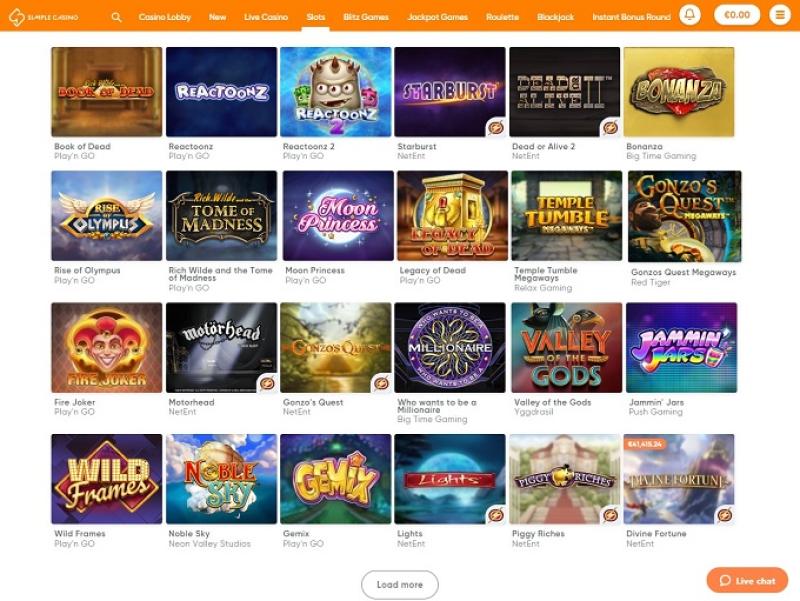 Казино Simple Casino работает на программном обеспечении Microgaming, Net Entertainment, 1x2gaming, Amatic Industries, Barcrest, Big Time Gaming, ELK Studios, Evolution Gaming, Genesis Gaming, iSoftBet, lightningboxgames, Novomatic, Oryx, Play'n GO, playson, Quickspin, Relax Gaming, Thunderkick, Yggdrasil, Endorphina, Wazdan, Realistic Games, Booming Games, Stakelogic, Pragmatic Play, Nolimit City, Felt Gaming, Red Tiger Gaming, Red Rake Gaming, Fantasma Games, FunFair, Octopus Gaming, SYNOT Games, Kalamba, Revolver Gaming, Skywind, Triple Edge Studios, Northern Lights Gaming, Stormcraft Studios, Switch Studios, OneTouch, Electric Elephant Games, Dreamtech Gaming, Bulletproof Games, All41 Studios, Gameburger Studios, Pulse 8 Studios, Slot Factory, Neon Valley Studios, Golden Rock Studios, Spearhead Studios, Swintt, TrueLab Games, SpinPlay Games, Real Dealer Studios, GONG Gaming, Blue Guru Games, Lady Luck Games, Buck Stakes Entertainment, Games Global, Wizard Games, Bally Technologies, bluberi, Blueprint Gaming, Greentube, Leander Games, NextGen, Pariplay, Push Gaming, WMS, Inspired Gaming, Cayetano, SG Interactive, Gamomat, Red7Mobile, Scientific Games, Iron Dog Studio, Old Skool Studios, Foxium, Just For The Win, Reflex Gaming, Storm Gaming Technology, PearFiction Studios, Wild Streak Gaming, Slingshot Studios, Fortune Factory Studios, STHLM Gaming, 4ThePlayer, AvatarUX, Crazy Tooth Studio, High 5 Games, ReelPlay, Alchemy Gaming, BB Games, Snowborn Games, Boomerang Studios, Hacksaw Gaming, Max Win Gaming, Gold Coin Studios, Bang Bang Games, Arcadem, SilverBack Gaming, Peter And Sons, Aurum Signature Studios, Armadillo Studios, FlipLuck, Area Vegas, RAW iGaming, Spribe, Circular Arrow, Print Studios, Gaming Corps, Four Leaf Gaming, INO Games, Nailed It! Games, Live 5, Atomic Slot Lab, Neko Games, Indigo Magic, Light & Wonder and VoltEnt , а игры предоставляются через веб-платформу, которая загружается в любом интернет-браузере. Сайт хорошо разработан, и вы также можете получить к нему доступ со своего смартфона, поскольку поддерживаются мобильные ставки.