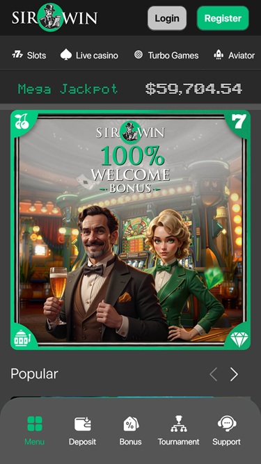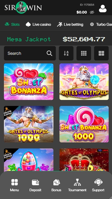Сайт полностью адаптивный и оптимизирован для игры в казино на ходу. Вы можете получить доступ ко всему контенту с портативных устройств, независимо от размера их экрана. Имейте в виду, что независимо от того, предпочитаете ли вы играть на мобильном устройстве или на персональном компьютере, стабильное интернет-соединение обеспечит быструю загрузку игр. В обоих случаях вы можете рассчитывать на превосходный игровой опыт. Давайте вместе изучим лобби, чтобы узнать больше о предложениях SirWin!