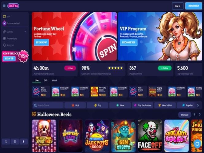 Запущенное в 2025 году, казино Sixty6 — это многофункциональное социальное казино, которое в основном принимает игроков из США и предлагает большой выбор игр в стиле казино, главным образом онлайн-слотов и мгновенных игр. Бренд известен своей масштабной программой акций, включающей захватывающие бонусы, акции, розыгрыши и программы лояльности, поэтому игроки, предпочитающие казино с розыгрышами, всегда найдут чем воспользоваться.