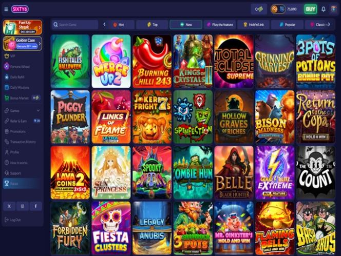 Что касается конкретных типов игр, в казино Sixty6 вы сможете играть, и большую часть времени вы проведете за онлайн-слотами. Как и многие другие казино, предлагающие лотереи, этот бренд в основном специализируется на обширной линейке слотов , охватывающей множество категорий и жанров, включая кластерные выплаты, джекпоты, Megaways, Hold n' Links, классические слоты и бонусные покупки.