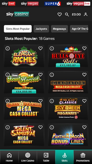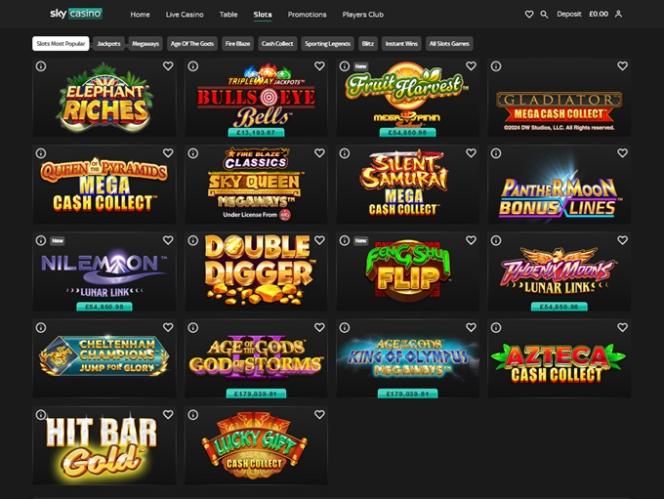 В Sky Casino представлен широкий выбор слотов, включая большое количество видеослотов и небольшое количество классических игр. Также предлагаются прогрессивные джекпоты, дающие игрокам шанс выиграть миллионы долларов в любой момент времени.