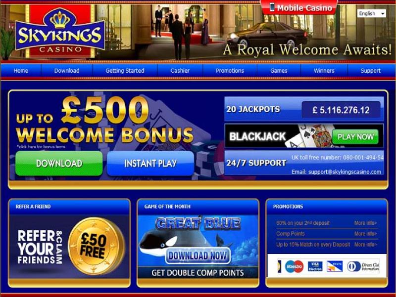 Казино Sky Kings работает на программном обеспечении Playtech , что позволяет предлагать игрокам более 130 игр. Казино предлагает игрокам как загружаемую версию своего программного обеспечения, так и версию для мгновенной игры, в которую можно играть прямо в веб-браузере.Blackjack