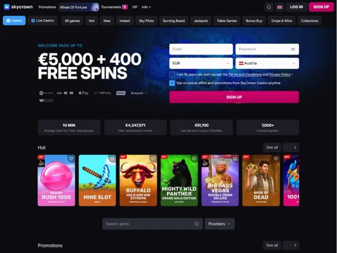 Дополнительные ежедневные, еженедельные и выходные акции делают предложения SkyCrown еще более привлекательными, поэтому обязательно ознакомьтесь с предложениями этого игорного бренда!