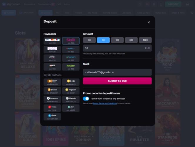 Игроки, предпочитающие использовать криптовалютные способы оплаты, будут рады узнать, что SkyCrown позволяет совершать транзакции в различных популярных криптовалютах.