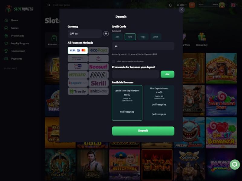 Slot Hunter Casino предлагает захватывающий выбор слотов с отличными бонусами и быстрыми выводами. Платформа удобна для пользователя, обеспечивая плавный игровой опыт как для новичков, так и для опытных игроков.