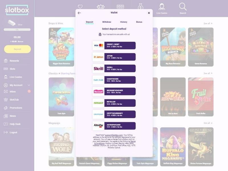 Slotbox — это онлайн-казино, принадлежащее и управляемое компанией Slotbox NV, зарегистрированной в соответствии с законодательством Кюрасао, имеющей лицензию и регулируемой компанией Antillephone NV.
